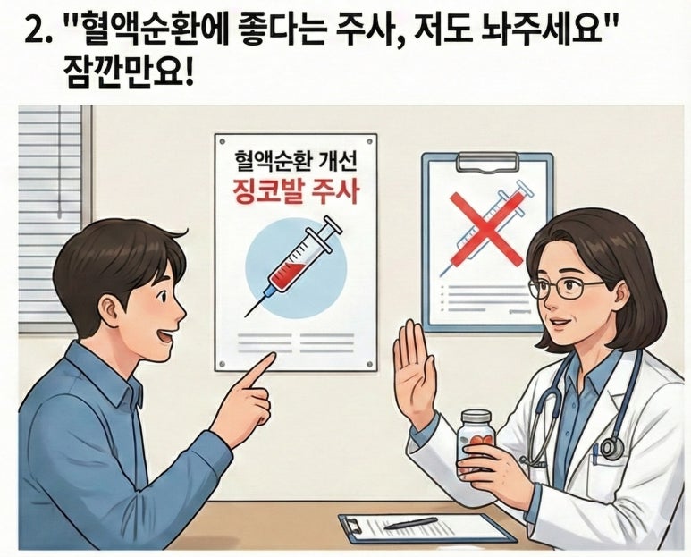 이 글을 읽으시다가 "어머, 나 며칠 전에 징코발 주사 맞았는데!" 하고 놀라신 분들도 계실 거예요. 너무 걱정해서 스트레스받으실 필요는 없습니다. 우리 몸은 생각보다 강하거든요.